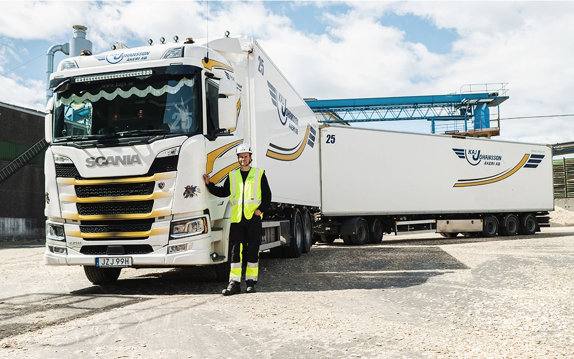 Fordonen hos Kaj Johanssons Åkeri utgör en viktig stomme i företaget. Därför har vi moderna miljövänliga fordon.